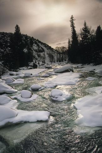 Early Morning Upstream View Of The Roaring Fork River